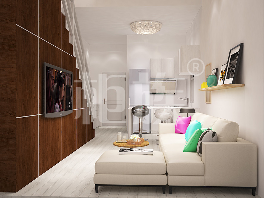 The upper and lower two layers of containers are staggered, which can not only expand the usable area of the apartment, but also customize the appearance of the apartment. The whole color is fresh and bright, full of modern design style.